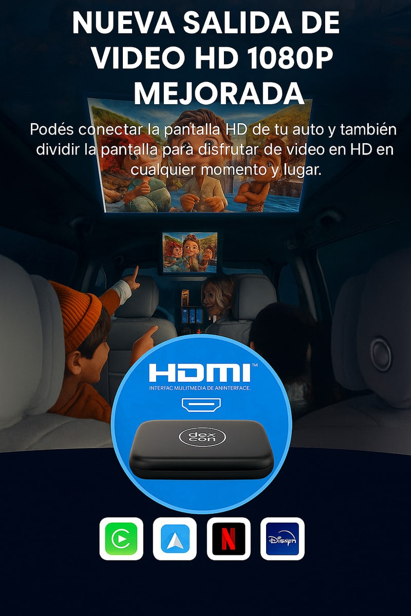 Su nueva salida HDMI permite conectar la pantalla HD del vehículo o pantallas adicionales, logrando una reproducción de video nítida, estable y con excelente contraste. Ideal para usar aplicaciones de streaming, mapas o contenido multimedia.