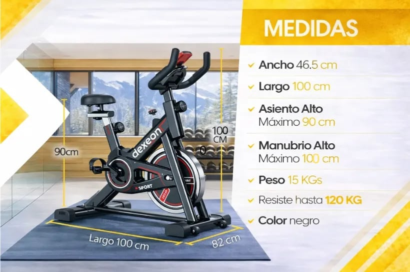 Lleva tu entrenamiento al siguiente nivel con la **bicicleta fija DEXEON**, diseñada para ofrecer una experiencia de spinning estable, eficiente y totalmente adaptable a tu ritmo. Ideal para quienes buscan mejorar su condición física, quemar calorías y entrenar con seguridad desde casa.