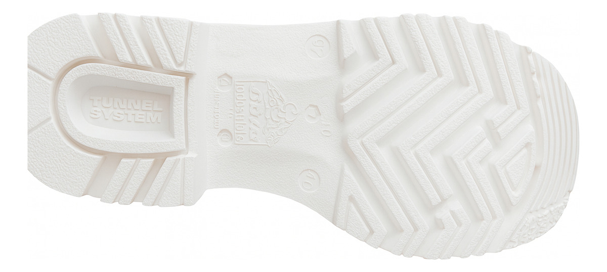Diseñada con **patrón direccional TUNNEL SYSTEM**, optimiza la tracción en pisos mojados, jabonosos, con grasa o agentes químicos.