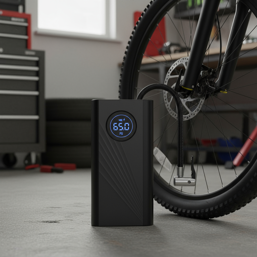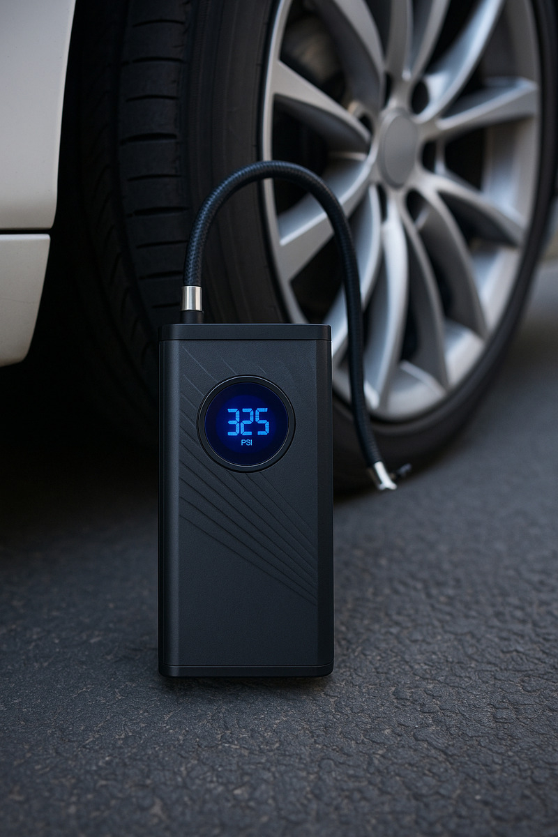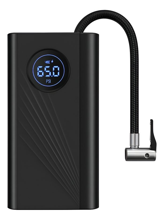 Mantené la presión perfecta en tus neumáticos donde sea que estés con el **Compresor Digital Portátil CQB-02**, un inflador inteligente con batería recargable que combina **alto rendimiento, diseño elegante y tecnología avanzada**.