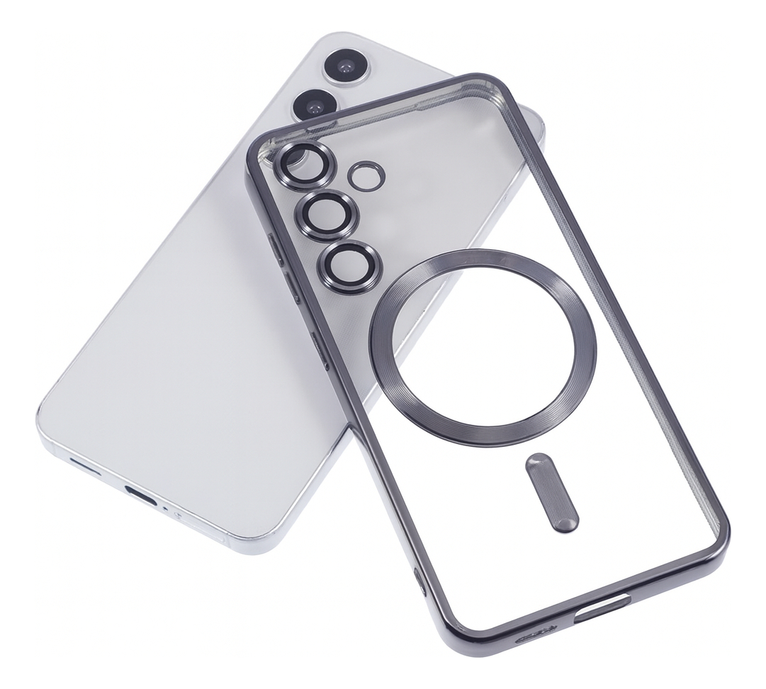 Esta funda combina materiales de alta resistencia con un diseño moderno y minimalista que realza el estilo de tu teléfono mientras lo protege de golpes, caídas y rayaduras. Su estructura rígida transparente conserva el color original del equipo y su borde con acabado metálico aporta una apariencia elegante y sólida.