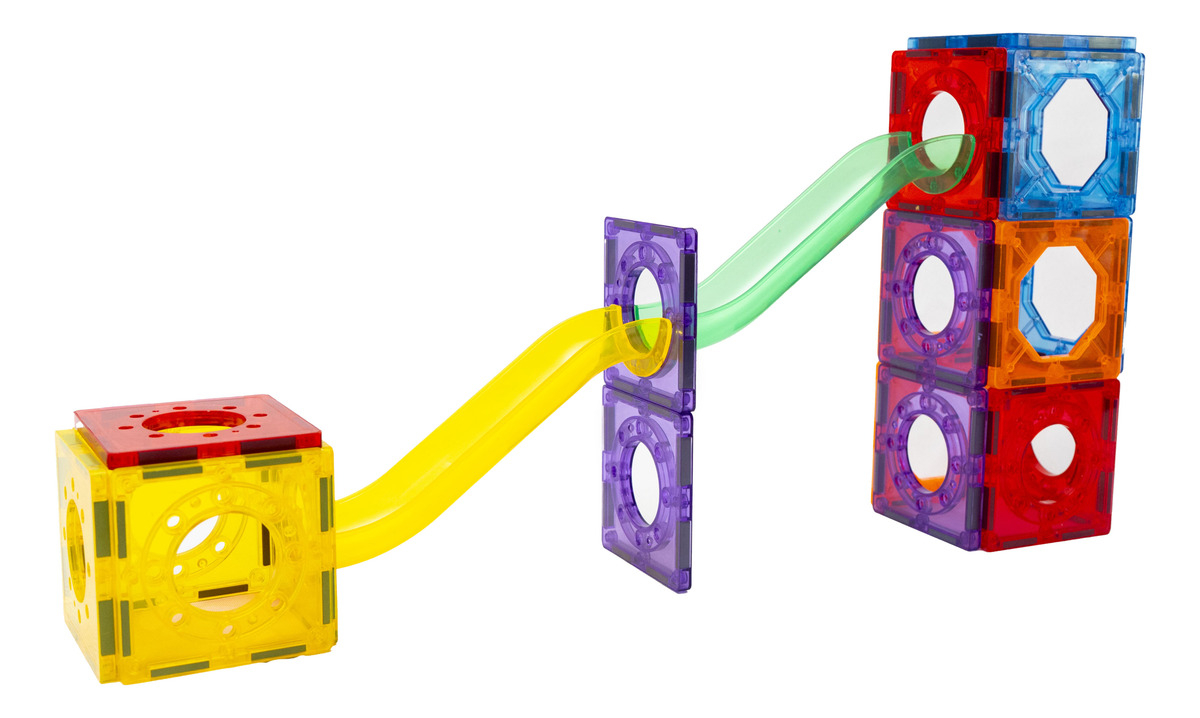 * **Tipo de piezas:** cuadrados, cubos, rampas curvas, rampas rectas y conectores circulares
