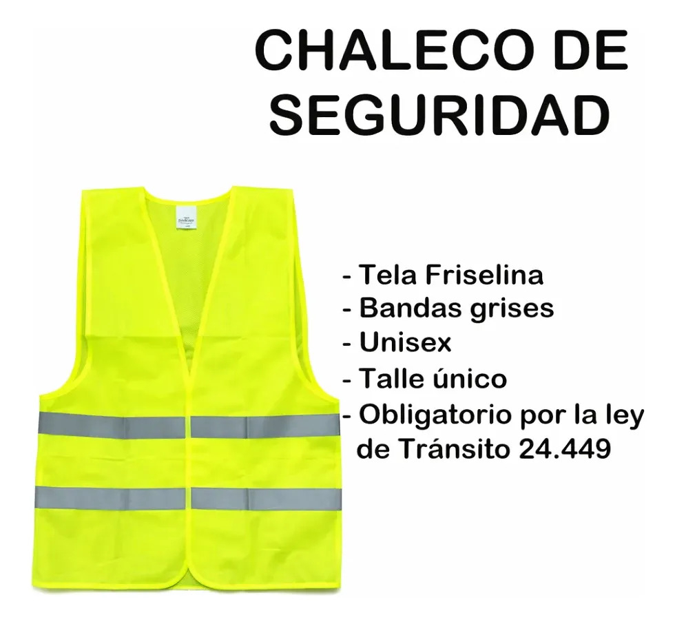 Circulá con tranquilidad y cumplí con la normativa vigente con este kit de seguridad vehicular completo. Diseñado para autos, camionetas y utilitarios, reúne los elementos esenciales exigidos para circular y superar controles viales y verificación técnica.