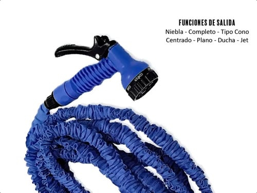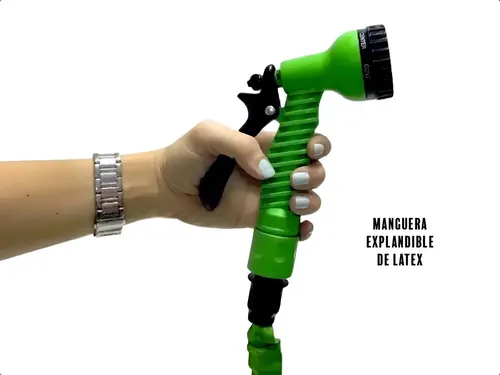 Experimenta la versatilidad y conveniencia con nuestra manguera expandible de látex, diseñada para facilitar todas tus tareas de riego y limpieza. Con una impresionante pistola de 7 funciones de salida, esta manguera es tu compañera ideal para mantener tu jardín, lavar autos y más.