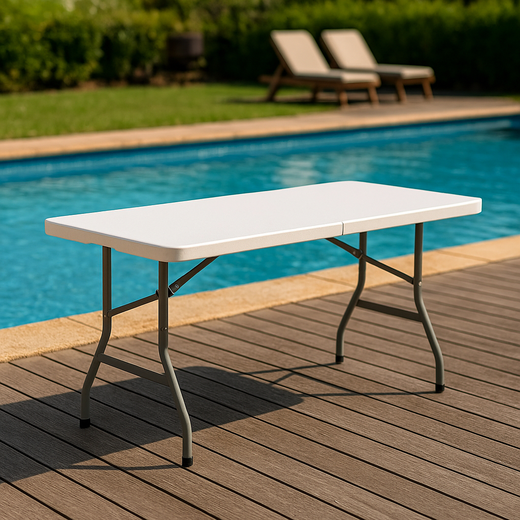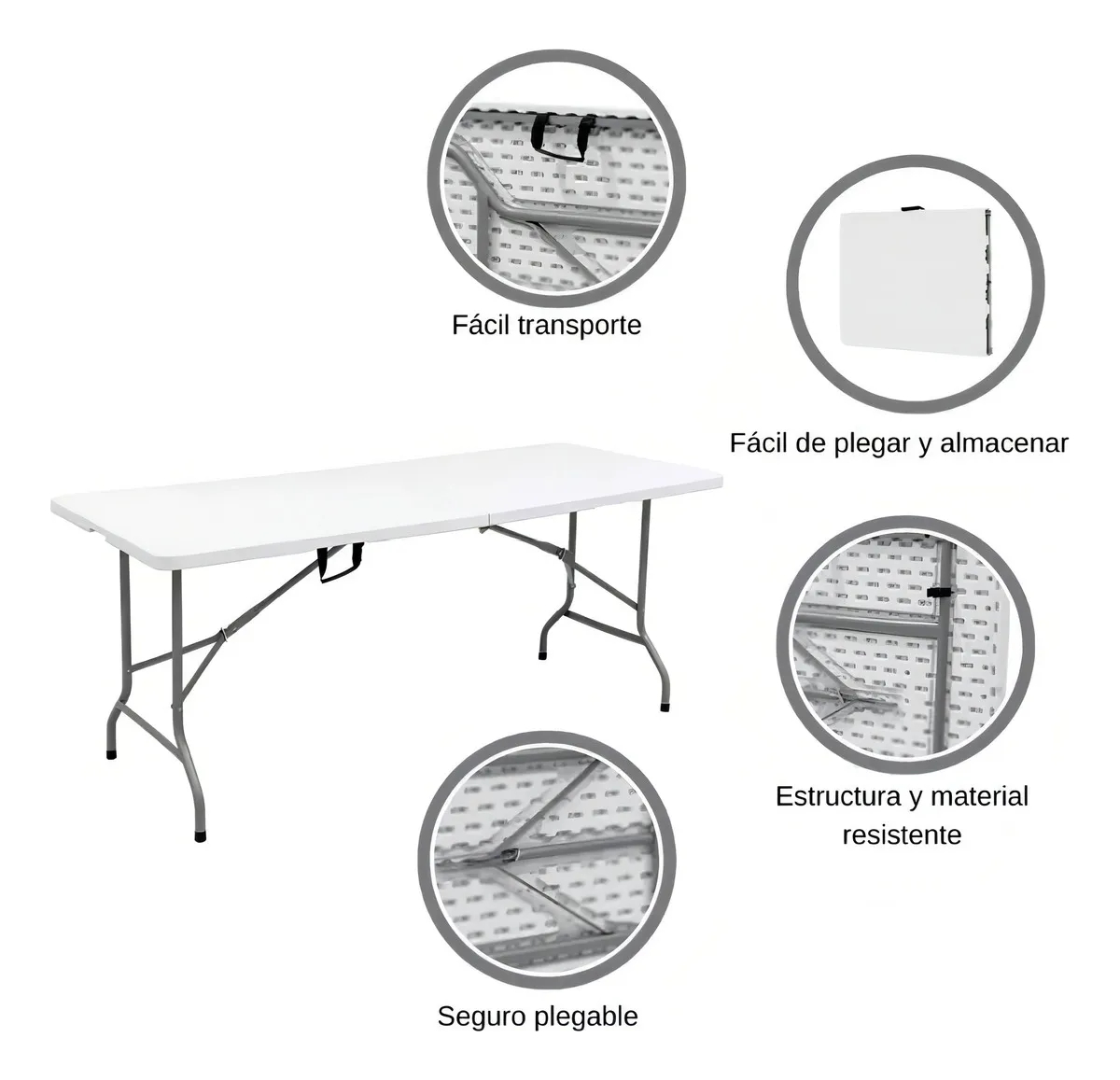 ## Mesa Plegable Dexeon 180 cm Reforzada Metal/Plástico Blanca – Resistencia, Practicidad y Estilo