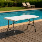 La **mesa plegable Dexeon de 180 cm** es la opción ideal para quienes buscan una superficie amplia, resistente y fácil de transportar. Su diseño tipo valija con manija integrada facilita el guardado y traslado, mientras que sus materiales de alta calidad garantizan durabilidad tanto en interiores como en exteriores.