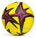 Fabricada en **PVC de alta densidad**, su superficie texturizada garantiza **mayor control, precisión en el toque y una sensación suave al contacto**. Su estructura cosida a máquina ofrece una **forma esférica perfecta** y una durabilidad sobresaliente frente al uso intensivo.