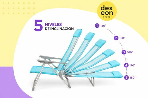 ## Reposera Plegable Playera Reclinable 5 Posiciones Liviana Reforzada