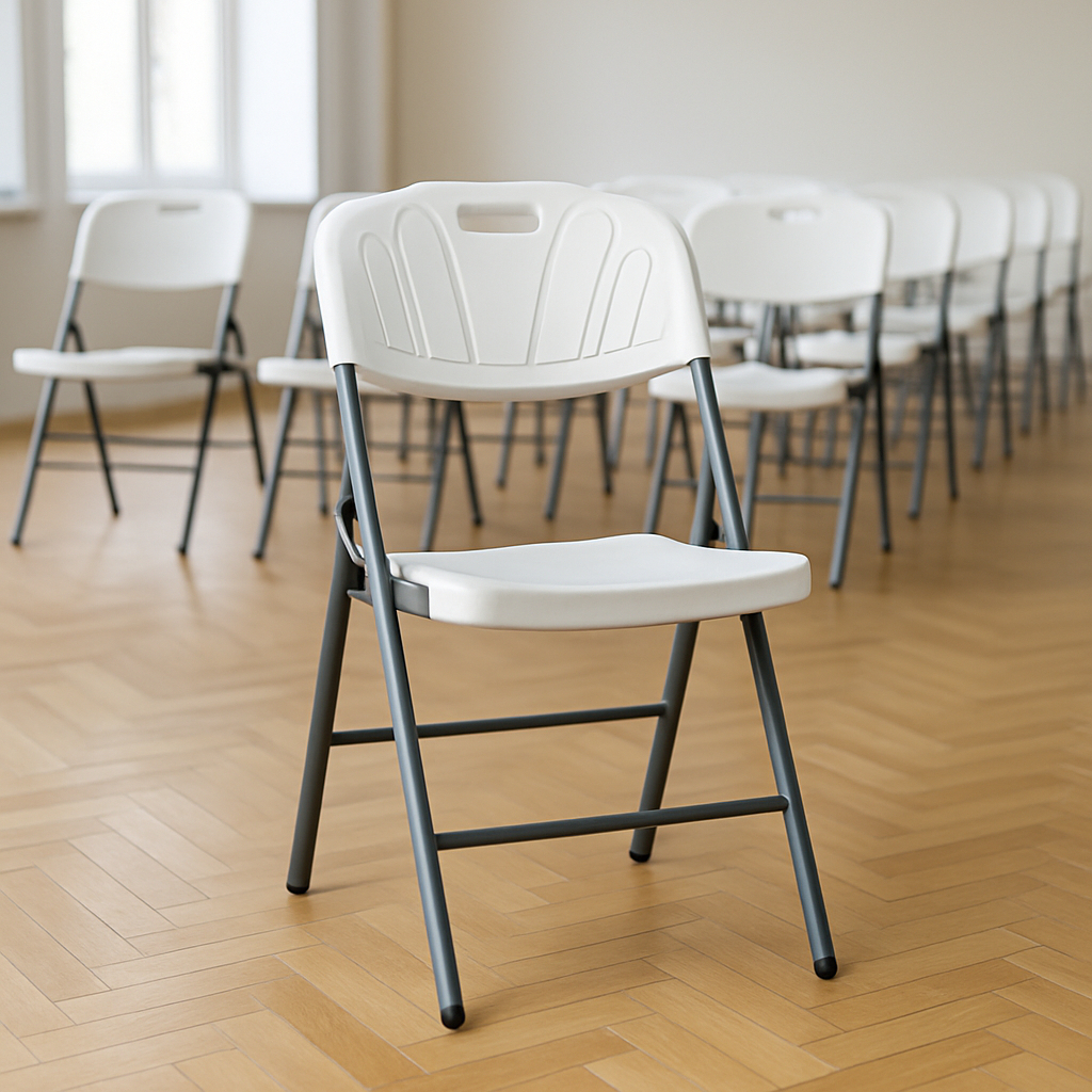 ## Silla Plegable Dexeon Plástica Blanca Reforzada Metálica – Resistencia y Practicidad en Cada Uso
