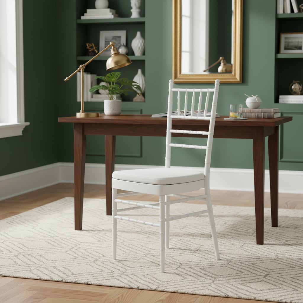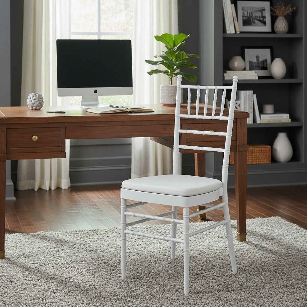 La **silla Tiffany blanca reforzada con almohadón blanco** es la elección ideal para eventos, jardines, comedores, salones o terrazas. Su diseño clásico, elegante y funcional la convierte en una opción versátil y resistente, pensada para brindar estilo sin sacrificar durabilidad ni confort.